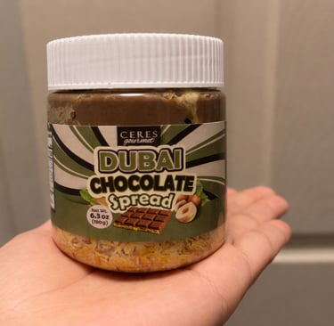Honest Dubai chocolate spread review. Sweet but balanced, subtle pistachio, light kataifi crunch. Small jar, premium taste—worth it?