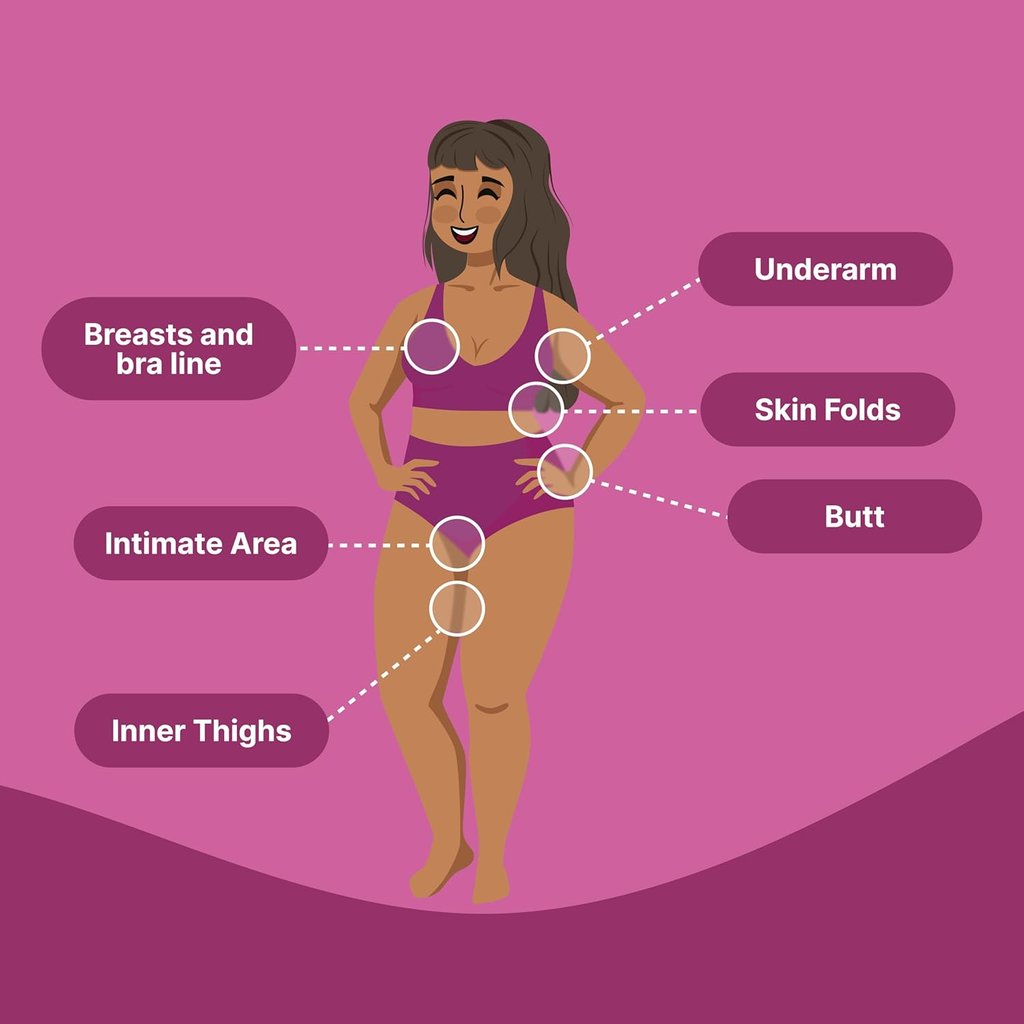 This powder is talc-free and designed for women’s all-over body use, including areas like inner thighs and under-bust (many customers mention that), so I gave it a shot.